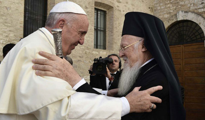 I menu, riferisce Riccardi, erano differenti a seconda dei gusti e delle tradizioni «ma si incrociavano», nello spirito di fraternità che si respira ad Assisi. Alla fine, la torta e il brindisi con lo champagne per il 25° anniversario del patriarcato di Bartolomeo al quale la Comunità di Sant’Egidio ha regalato un quadro raffigurante un albero per sottolineare la definizione di “patriarca verde” con cui spesso viene identificato Bartolomeo a motivo del suo impegno a favore dell’ambiente.