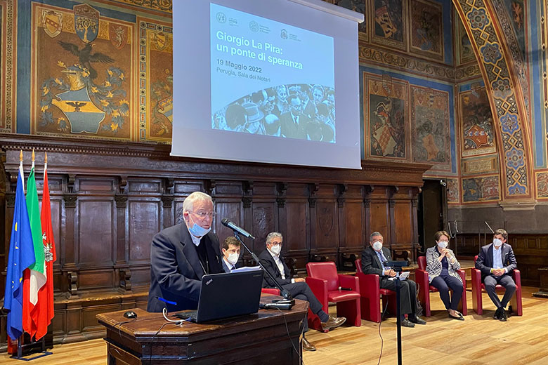 «Dal 27 maggio in poi – ha continuato Bassetti – sarò vescovo emerito, come lo è stato prima di me monsignor Giuseppe Chiaretti. Ho deciso di rimanere in diocesi, dopo essere stato a Firenze, in Maremma, a Massa Marittima-Piombino, e poi ad Arezzo-Cortona-Sansepolcro, dopo aver fatto un po’ il pellegrino», ha annunciato, perché «questa è l’ultima diocesi che il Signore mi ha affidato, che è la nostra diocesi, che è diventata per me come Firenze, la “culla” da dove ero partito. Perugia, l’Umbria, san Francesco… è il luogo dove vengo ad approdare. Questi sono i miei sentimenti – ha concluso – e pensate con che animo e con quanta nostalgia ho rivissuto, attraverso questo nostro convegno, la figura di Giorgio La Pira e ringrazio tanto tutti i relatori. Voi siete stati un segno della Provvidenza per riconciliarmi anche con tutta la mia vita. È stato bello che chi ci ha aiutati tutti sia questo segno, che rimane di sicura speranza, che è Giorgio La Pira».