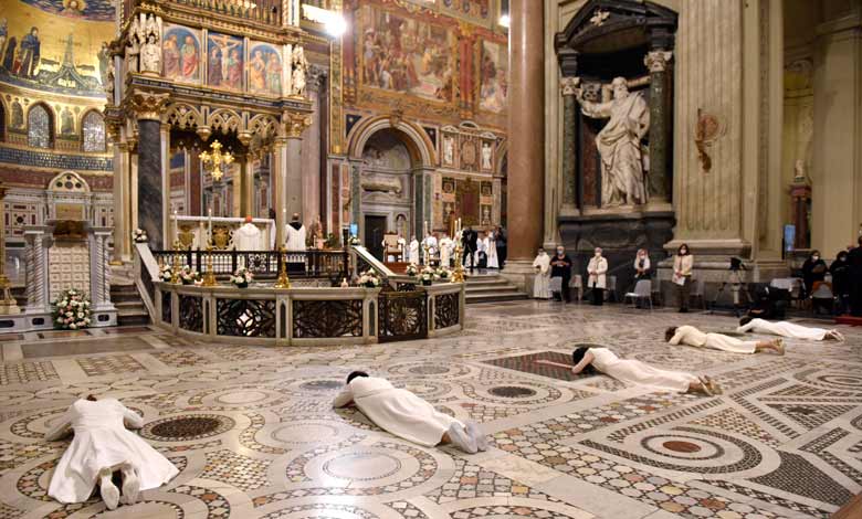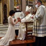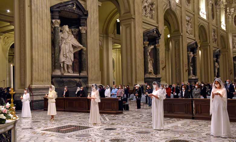 Nel dolore e nella confusione generati dalla pandemia, la diocesi attinge forza e speranza dagli “Eccomi” risuonati nella basilica di San Giovanni in Laterano. Dopo l’ordinazione di cinque nuovi presbiteri, un nuovo vescovo ausiliare e otto diaconi, sabato 31 ottobre, a conclusione di un mese particolarmente «ricco di grazia», il cardinale vicario Angelo De Donatis ha presieduto nella cattedrale di Roma il rito di consacrazione di cinque donne nell’Ordo Virginum, promulgato 50 anni fa, esattamente il 31 maggio 1970, da Papa Paolo VI. Un rito di stampo nunziale durante il quale hanno detto “sì, lo voglio” Paola Zallocco, Alessandra Medici, Rosaria Piazza, Chiara d’Onofrio e Lucrezia Malena. Con i nuovi consacrati, si uniscono in «una bella cordata verso la vetta delle beatitudini, chiamate a portare, come donne e madri, il peso e la responsabilità della santità del popolo di Dio».
