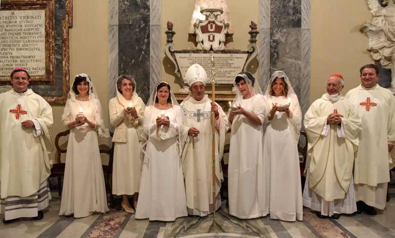 Papa Francesco nel messaggio per il 50° anniversario della promulgazione del Rito della consacrazione delle vergini invita le consacrate a tessere «trame di rapporti autentici, che riscattino i quartieri delle nostre città dalla solitudine e dall’anonimato». Rifacendosi a queste parole, il cardinale ha incitato le cinque donne a mostrare al mondo «la bellezza della fraternità». Le appartenenti all’Ordo Virginum, infatti, vivono pienamente immerse nel mondo. Chiara, 37 anni, proseguirà il servizio di volontariato nel carcere di Rebibbia sezione femminile e di coordinatrice di Casa Ebron, casa di accoglienza per donne detenute agli arresti domiciliari o in misure alternative al carcere. Alessandra, 49 anni, continuerà a prendersi cura dei suoi pazienti in qualità di terapista della neuroriabilitazione pediatrica. Rosaria, 50 anni, impiegata in un ministero, continuerà ogni mattina ad andare in ufficio. Non hanno segni distintivi, non svolgono vita comunitaria ma vivono nelle loro rispettive abitazioni, non appartengono a un ordine religioso, pertanto non hanno un superiore ma hanno come figura di riferimento il vescovo che la diocesi ha scelto come delegato. Attualmente è Paolo Ricciardi, presente sabato insieme al cardinale Francesco Coccopalmerio, presidente emerito del Pontificio Consiglio per i testi legislativi.