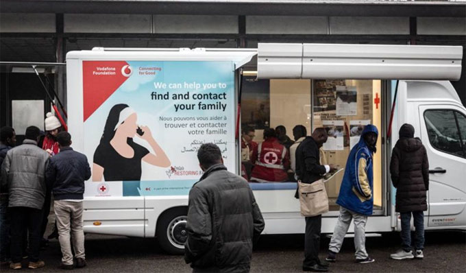 Nell’ufficio mobile rifugiati, richiedenti asilo e migranti possono contattare i familiari, con una telefonata di 3 minuti e il supporto degli operatori