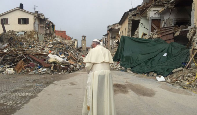 Francesco ad Amatrice: «Vi sono vicino e prego per voi»
