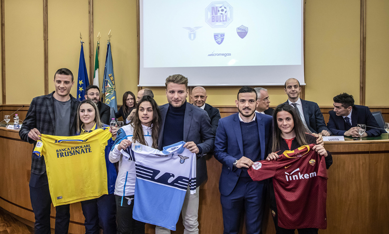 Le squadre calcistiche rappresentative del Lazio in serie A e la Regione unite per dire “no” al bullismo e al cyberbullismo perché «lo sport è l’antidoto migliore» contro ogni prevaricazione. A rimarcarlo ieri mattina, 12 marzo, Ciro Immobile, attaccante della Lazio e della nazionale italiana, Alessandro Florenzi centrocampista della Roma e della nazionale italiana, e Daniel Ciofani attaccante del Frosinone di cui è capitano con i rispettivi vertici delle società e delle scuole calcio. Portavoce di un messaggio di amicizia e di rispetto reciproco, infatti, saranno i bambini delle scuole calcio di Roma, Lazio e Frosinone che per tutta la stagione indosseranno in campo le magliette delle rispettive squadre sulle quali è stato cucito il logo “No bulli”. L’iniziativa rientra nell’omonima campagna presentata in Consiglio regionale. La Regione Lazio è stata la prima, nel 2016, ad emanare una legge che disciplina gli interventi per la prevenzione e il contrasto del fenomeno del bullismo. La campagna è stata promossa dal vice presidente del Consiglio della Regione Giuseppe Cangemi, ed è stata realizzata grazie all’intesa sottoscritta dal garante per l’infanzia e l’adolescenza del Lazio Jacopo Marzetti con le società calcistiche As Roma, SS Lazio e Frosinone Calcio.