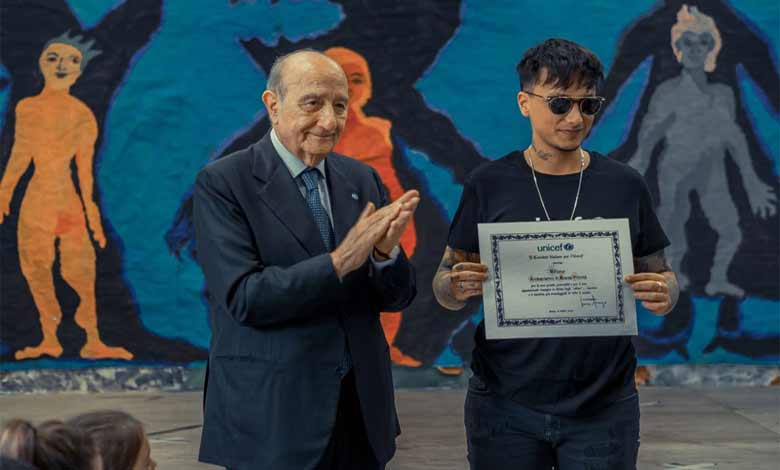 È tornato nel suo quartiere, San Basilio, più precisamente nella scuola elementare dell’Istituto comprensivo Ghandi, Niccolò Moroni, in arte “Ultimo”, per ricevere dal presidente Francesco Samengo la nomina a Goodwill ambassador di Unicef Italia. La motivazione: «La sua grande generosità e il suo appassionato impegno in difesa degli “ultimi”, i bambini e le bambine più svantaggiati di tutto il mondo». Il presidente Unicef lo ha spiegato davanti ai piccoli alunni della scuola Ghandi. Un video dell’incontro sarà trasmesso poi mercoledì 13 novembre in prima serata su Rai Uno, nel corso del programma “Prodigi – La musica è vita”, realizzato da Rai e Endmenol Shine Italy in collaborazione con Unicef Italia.