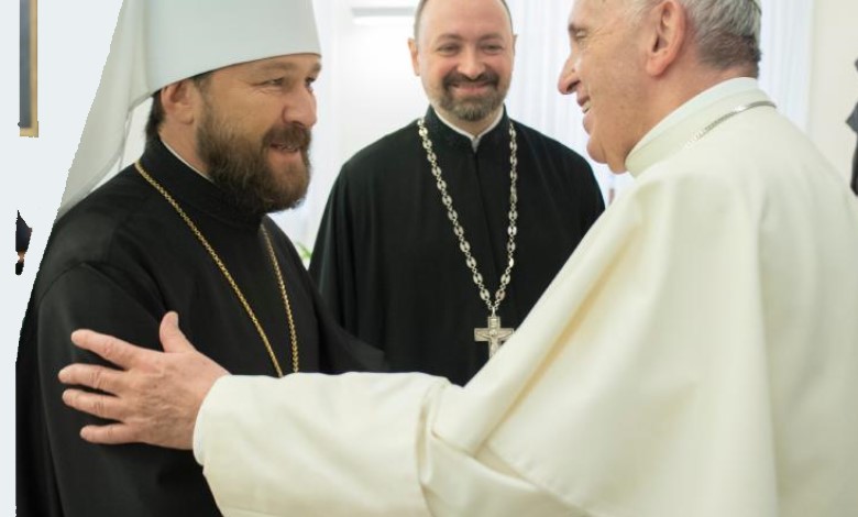 Rivolgendo il suo saluto al Papa, Hilarion ha evidenziato che «nel mondo, che sta attraversando un periodo di drammatiche divisioni, non si può sottovalutare il ruolo pacificatore e umanitario delle Chiese. Il campo della cultura, con la sua lingua universale, gode di un’enorme potenzialità per la comune testimonianza delle Chiese sui valori universali di pace, d’amore, di misericordia e di perdono che trovano la loro espressione più alta nell’annuncio evangelico». Nelle parole del metropolita anche il ricordo della Dichiarazione comune firmata da Papa Francesco e dal Patriarca Kirill a L’Avana, nella quale è stata messa in rilievo la comune tradizione spirituale delle Chiese d’Oriente e d’Occidente.