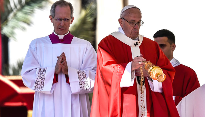 «Il Signore converta il cuore delle persone che seminano terrore, violenza e morte, e anche il cuore di quelli che fanno e trafficano le armi». Al termine della Messa per la Domenica delle Palme, in piazza San Pietro, il Papa ha auspicato la fine degli attacchi terroristici che, dopo la Svezia, hanno colpito l’Egitto. Francesco ha affidato «a Cristo, che oggi entra nella Passione, e alla Vergine Santa le vittime dell’attentato terroristico avvenuto venerdì scorso a Stoccolma, come pure quanti sono ancora duramente provati dalla guerra, sciagura dell’umanità». Subito dopo avere pronunciato queste parole, leggendo da un foglio passato all’ultimo momento dal Maestro delle Cerimonie monsignor Guido Marini, Francesco ha appreso dell’attentato avvenuto pochi minuti prima in Egitto e poi rivendicato dall’Isis. «Preghiamo per le vittime dell’attentato compiuto purtroppo oggi, questa mattina, al Cairo, in una chiesa copta», ha detto. E poi ha espresso il suo «profondo cordoglio» ai familiari dei defunti e dei feriti, assicurando la sua vicinanza a «mio fratello» Tawadros, alla chiesa copta e a tutta «la cara nazione egiziana». «Prego per i defunti e per i feriti, sono vicino ai familiari e all’intera comunità», ha aggiunto Bergoglio.