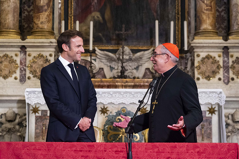 Il presidente francese Emmanuel Macron, arrivato a Roma per prendere parte all’incontro interreligioso “Il grido della pace” promosso dalla Comunità di Sant’Egidio, ha visitato ieri, 24 ottobre, il Palazzo Lateranense, incontrando poi il Capitolo, di cui è membro onorario.