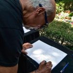 In centinaia hanno sfidato il caldo pomeridiano per rendere omaggio al maestro Andrea Camilleri, morto a Roma mercoledì 17 luglio. Da ieri, 18 luglio, il “papà” del commissario Salvo Montalbano riposa nel Cimitero acattolico di Testaccio, ai piedi dell’Angelo della Resurrezione scolpito dall’americano Franklin Simmons, sepolto a qualche metro di distanza, all’ombra di cipressi e pini secolari. Decine di fiori, biglietti, messaggi sono stati lasciati sulla tomba dello scrittore siciliano tumulato ieri mattina durante una cerimonia riservata alla sola presenza della moglie Rosetta, delle tre figlie Andreina, Elisabetta e Mariolina, delle nipoti e dei familiari più stretti.