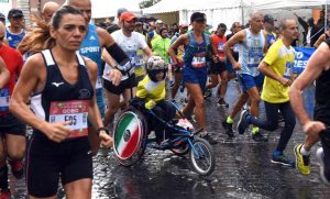 «È bellissimo poter fare una mezza maratona partendo da via della Conciliazione e poterlo fare coinvolgendo i veri atleti così come gli appassionati, appartenenti a diverse religioni», afferma il corridore di Athletica Vaticana ed ex Guardia svizzera Frowin Bachmann. «Quello che speriamo – spiega – è di poter unire e creare dei ponti attraverso lo sport». Una corsa bagnata dalla pioggia settembrina, che per moltissimi atleti è stata vissuta quasi come una benedizione e non ha scoraggiato nessuno. «Il messaggio di questo evento non è quello della sola competizione o esclusivamente del tempo da battere per arrivare primi – racconta Stefano Ciallella, coach ed ex atleta delle Fiamme Azzurre – ma è quello dello stare insieme, di fratellanza». Ciallella in particolare è la guida atletica di molti ragazzi non vedenti, e proprio due atleti ciechi hanno preso parte alla mezza maratona, oltre a Gianluca Palazzi, di Athletica Vaticana, con la sua handbike.