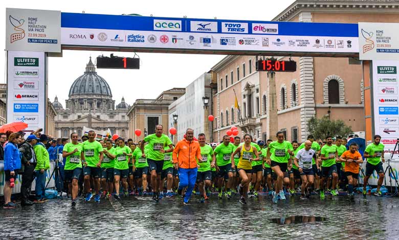 La mezza maratona – accompagnata dalla non competitiva Run for Peace – partita e arrivata a via della Conciliazione. Il saluto del Papa: «Un messaggio di fraternità»