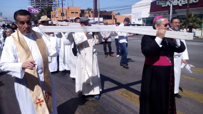 La tradizionale Marcia per la vita promossa dalla chiesa di Tijuana, in Messico, quest’anno ha voluto essere anche e soprattutto una marcia per i migranti, iniziata proprio con una preghiera davanti al muro frontaliero di confine, che a Tijuana esiste già da parecchi anni. Proprio sul muro l’arcivescovo di Tijuana, monsignor Francisco Moreno Barrón, ha voluto inserire i segni della croce e della corona di spine. «Un gesto che parla da solo – ha detto -. Vogliamo farci presenti – ha spiegato monsignor Moreno Barrón – a tutti i nostri fratelli migranti, non solo a quelli che passano per questa frontiera».