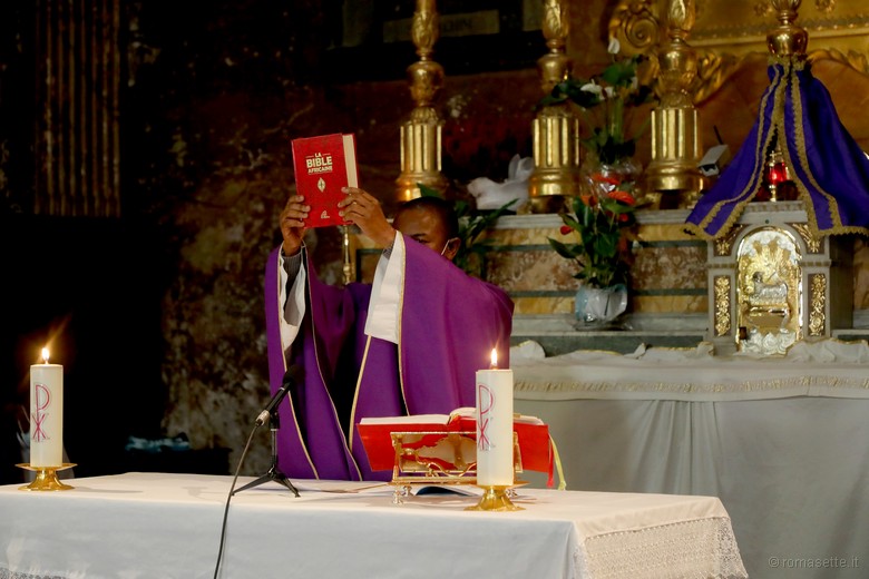 Nella seconda domenica di Quaresima il Vangelo proposto per la liturgia è quello della Trasfigurazione di Gesù sul Monte Tabor e a tal proposito il cappellano ha ricordato che l’ascesa è il momento della preghiera e dell’incontro intimo con il maestro, dal quale scaturisce il desiderio di «scendere velocemente dalla montagna» per testimoniare l’incontro con il Signore nel proprio vissuto quotidiano. «È proprio in questa dimensione della missionarietà che Luca Attanasio e Vittorio Iacovacci, dopo aver incontrato Cristo, si sono messi a servire il prossimo senza risparmiare la propria vita», ha detto don Adesengie, specificando che il commando che ha assassinato il diplomatico e il militare «li ha tolti dalla nostra vista ma non cancellerà la memoria del bene che hanno compiuto».