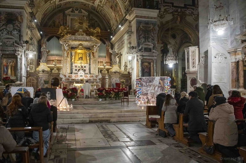 Le braccia allargate del crocifisso sembravano contenere e stringere a sé tutte le realtà di guerra e di violenza che le 30 bandiere appese dai giovani intorno a Lui rappresentavano, ognuna legata a una storia. È con questo segno dal valore simbolico forte che sabato sera, 18 gennaio, si è aperta la veglia di preghiera per la pace promossa dal settore Giovani dell’Azione cattolica di Roma in collaborazione con la Caritas diocesana, nella basilica di Santa Maria in Aracoeli, accanto a piazza del Campidoglio.