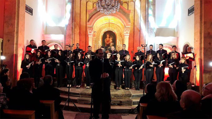 Il prete armeno cattolico ai vespri dei Camaldolesi: «Prima di ricostruire dobbiamo pensare a come vivere». Dando speranza. Il coro Neregatsi