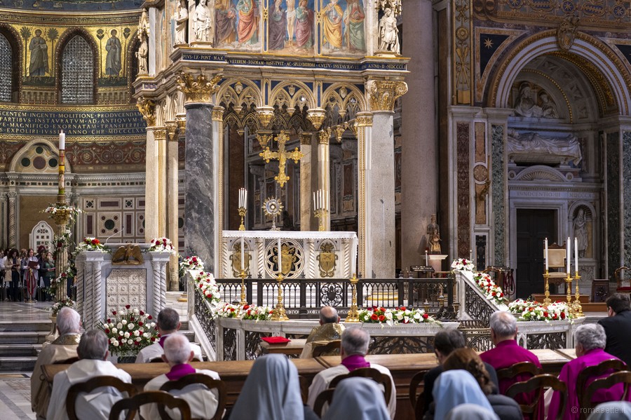 Nella basilica lateranense la preghiera della Chiesa di Roma, raccolta davanti a Gesù Eucaristia insieme al cardinale vicario per ringraziare per il dono della vita di Francesco. «Sentiamo l’assenza del nostro pastore. Lasciamoci rafforzare dal Signore»