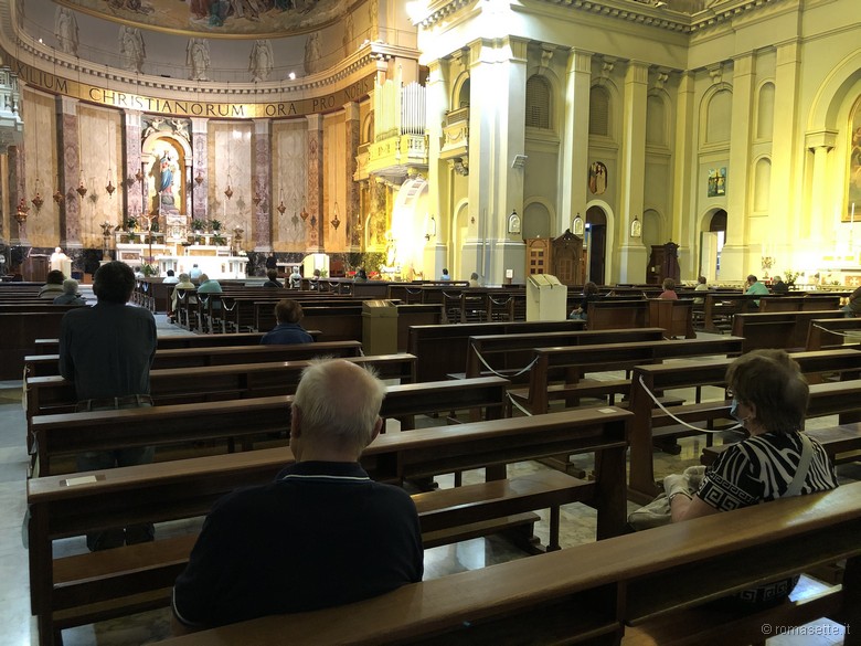 Al Tuscolano grande partecipazione alla ripresa delle celebrazioni col popolo. Ridotti i posti, aumentate le liturgie. La sanificazione e l’impegno dei volontari