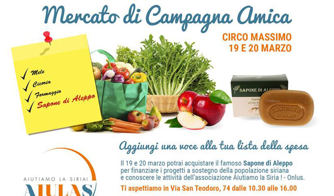 Proprio per finanziare l’acquisto del generatore, sabato 19 e domenica 20 marzo Aiutiamo la Siria! sarà presente al mercato “Campagna Amica” del Circo Massimo, in via di San Teodoro 74, dalle 10.30 alle 16, «per una vendita solidale del sapone di Aleppo», riferisce ancora Giovannelli. Il ricavato servirà anche a sostenere l’Ospedale italiano di Karak in Giordania.